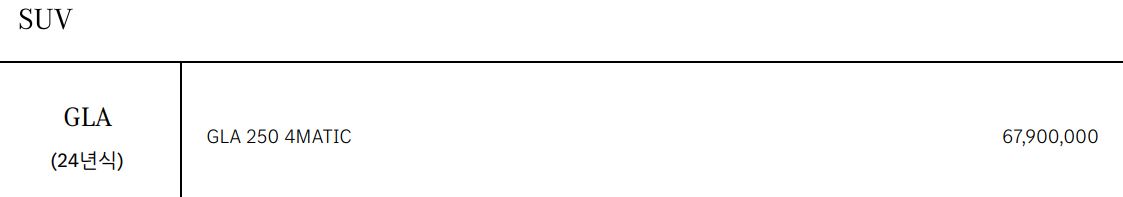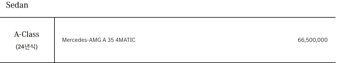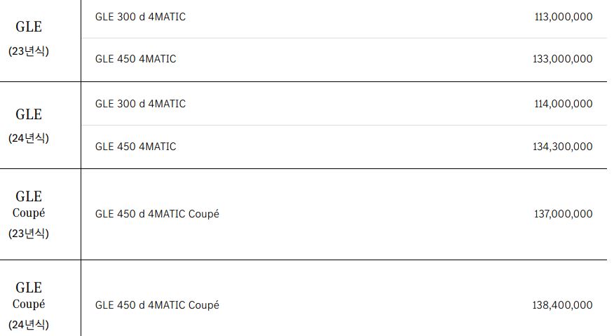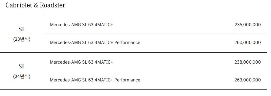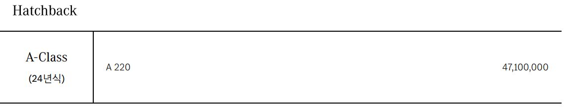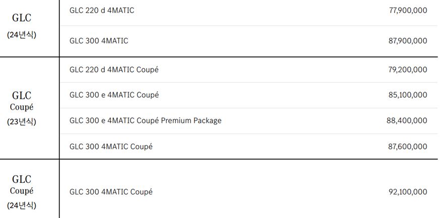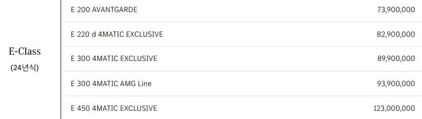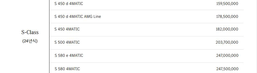이와 같은 구분은 가격별로 하여 크기와 형태별로 나눠진 것이며, A-class, C-class, E-class, S-class, CLA, CLE, CLS과 GLA, GLB, GLC, GLE, GLS, G-class, EQE, EQS, EQA, EQB, EQE SUV, EQS-SUV, SL은 모델명에 해당하니 참고하시기 바랍니다.