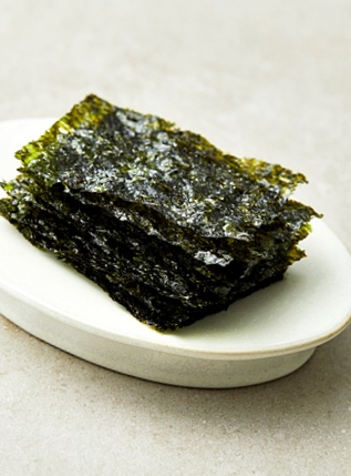김에는 알기네이트라는 성분이 있어 위와 장을 건강하게 만들고, 췌장 기량 향상에 도움을 줘요. 또한, 지방을 분해하는 효소를 제조하여 비만에 효력이 있습니다.