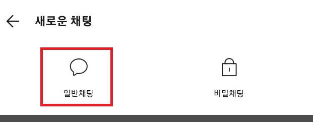 여기서 일반채팅을 선택하고 눌러주세요. 만약 비밀채팅이나 오픈채팅을 하고 싶으시면 선택하시면 됩니다.