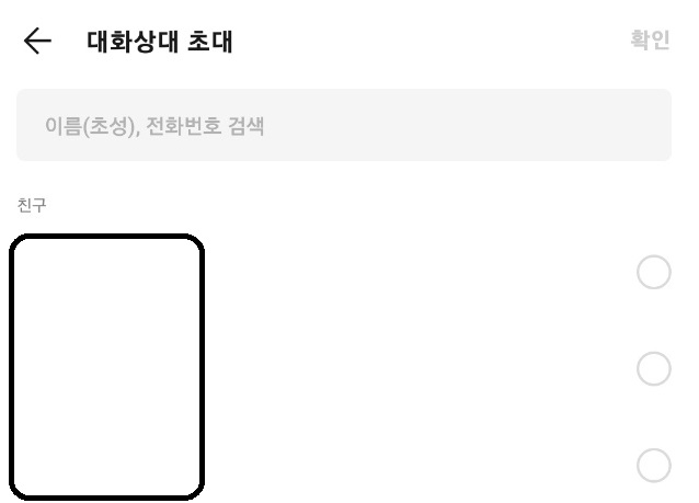다음으로 대화상대를 초대합니다. 원하는 대화 상대를 선택하시고 확인을 누릅니다.