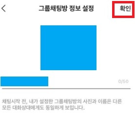 채팅방 사진과 이름을 설정하며 상대방이 채팅방의 이름과 사진을 볼 수 있도록 설정하고 확인을 누릅니다.